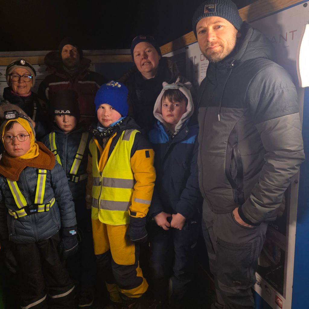Besøkande på Kometland på kveldstid den 22. mars 2025.